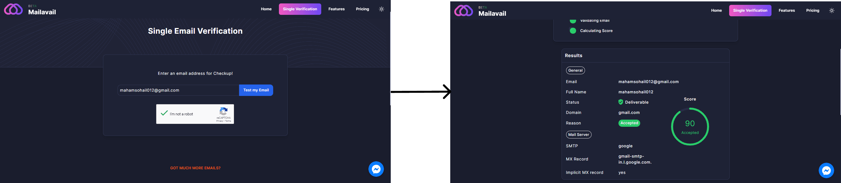 Verifying a single email and receiving real-time results is crucial for ensuring email integrity. This service instantly confirms if an email address is valid, properly formatted, and not associated with spam or fraudulent activity.